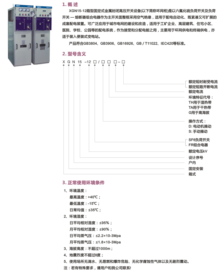 XGN15-12 SF6环网开关设备