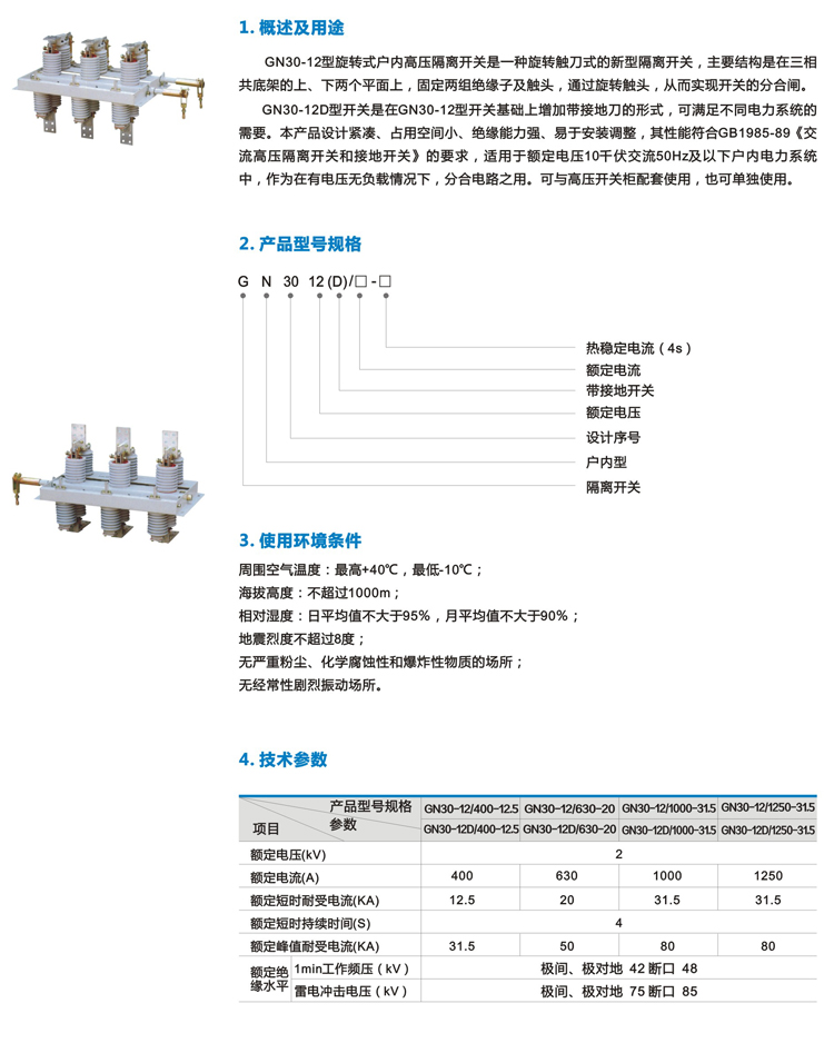 GN30-12系列户内旋转式高压隔离开关
